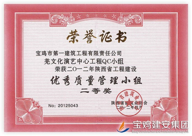 QC Team Award of Qiang Cultural and Performing Arts Center Project