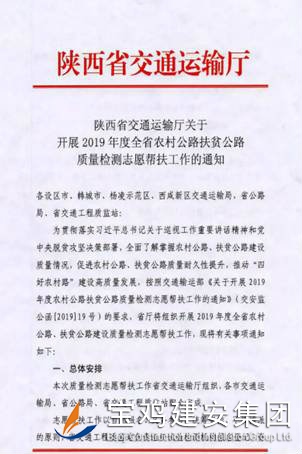 今年8月底,陜西省交通廳下發(fā)《關(guān)于開展2019年度全省農(nóng)村公路扶貧公路質(zhì)量檢測志愿幫扶工作的通知》,通知轄區(qū)內(nèi)試驗檢測機構(gòu)自愿報名參加扶貧公路義務(wù)檢測活動,對自愿報名并且通過資格能力審核的檢測單位隨機抽取各市的待檢縣,實施幫扶檢測活動,并要求于10月中旬完成檢測數(shù)據(jù)匯總表和分析報告上報工作。