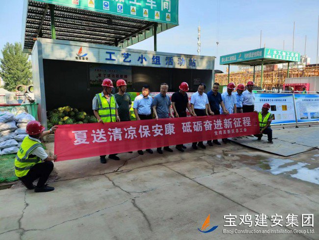 7月18日上午,寶雞高新區(qū)管委會黨工委委員、管委會副主任楊海翔,高新區(qū)總工會主席李廣強,區(qū)教育系統(tǒng)黨委書記、教育體育局局長唐宏,副局長劉輝等一行領(lǐng)導,前往建安集團承建的寶雞高新第三幼兒園建設(shè)項目工地,走訪慰問一線員工,開展“夏送清涼”活動。