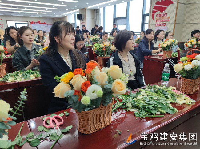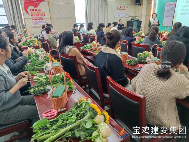 隨后,活動正式進入插花藝術環(huán)節(jié)。公司黨委特別邀請了兩名專業(yè)花藝師,為女職工們講授了選花、養(yǎng)護、顏色搭配、造型等插花藝術技巧,并詳細介紹了各種花卉的相關知識?;ㄋ噹煹闹v解生動有趣,女職工們聽得津津有味,不時提出問題和互動,現(xiàn)場氣氛輕松愉快。