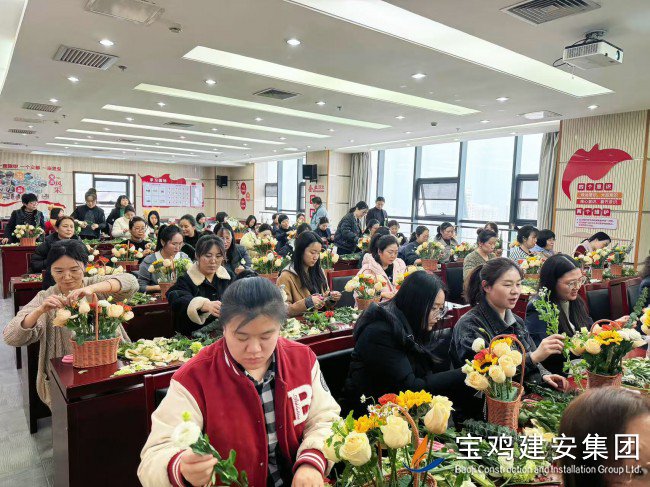為慶祝第115個“三八”國際勞動婦女節(jié),3月6日下午,公司黨委、工會和團委聯(lián)合舉辦了“魅力巾幗 花漾生活”創(chuàng)意插花活動。 此次活動旨在提升女職工的幸福感,陶冶情操,展示公司女員工的精神風貌,進一步團結和激勵廣大女員工以更高的熱情投入工作?;顒釉诠窘ò泊髲B22樓黨員活動室舉行,來自機關各部室和基層各單位的60多名女職工踴躍參與。